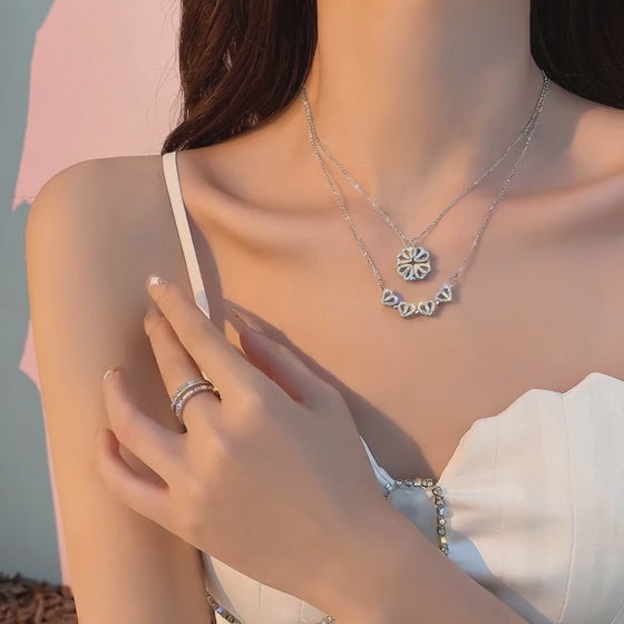 Feel lucky every day with our handcrafted Lucky Heart necklace. Our 2-in-1 Four-Leaf Clover necklace is a unique and versatile piece that can be worn in two different ways. The pendant is adorned with zircon stones, creating a captivating and eye-catching sparkle. It makes a perfect gift for someone special in your life or a stunning addition to your own jewelry collection.